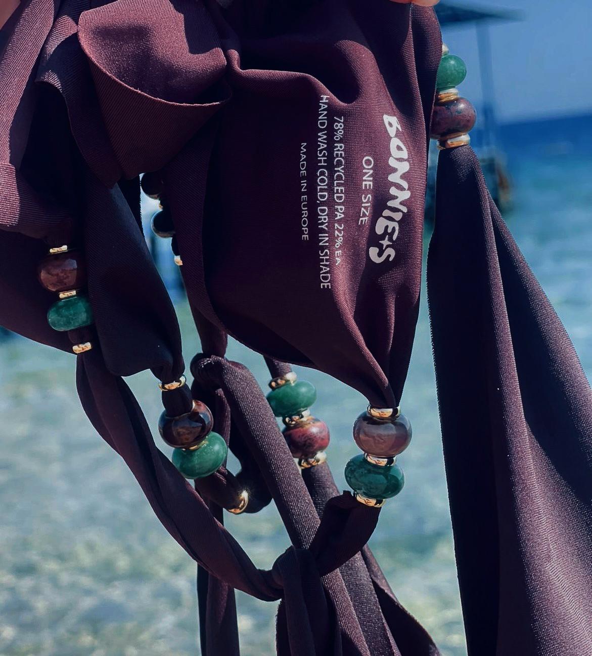 Match your favourite bikini with our selection of charms to perfect your look. The gemstone beads and 24k gold-plated rings add a uniquely beautiful, personal touch, and allow you to fully customise the fit to your body.